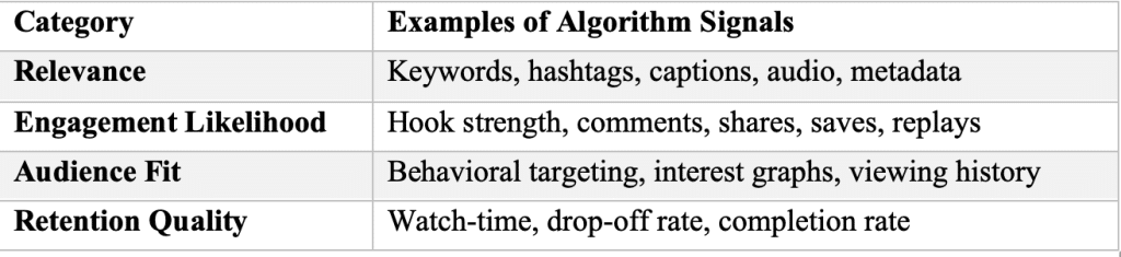 Each platform uses its own models, but the signals they evaluate are surprisingly similar: