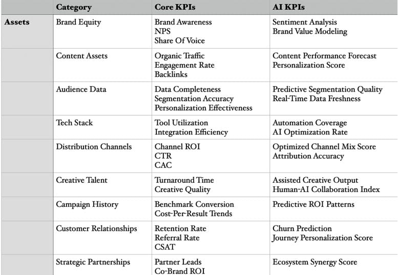 AI’s role: From real-time brand sentiment tracking to predictive customer modeling, AI amplifies each asset’s value and scalability.